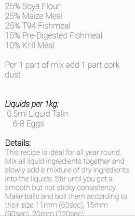 Recept je z videa na youtube.com, kde Kubák navštívil výrobnu Splash baits a tento recept byl divákům ukázán na kameru. Recept nemám vyzkoušený.